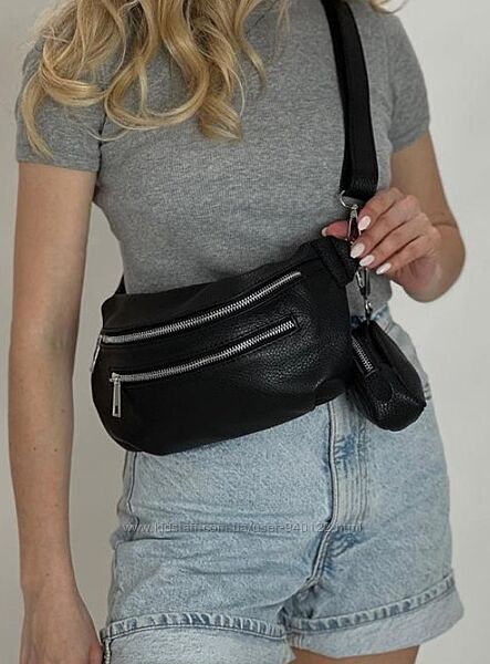 Подробное описание: Бананка жіноча шкіряна Італія чорна сумочка через плече натуральна шкіра