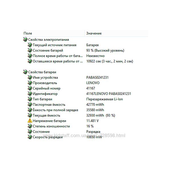 Характеристики батареи Литий-ионная, 6-ячеечная