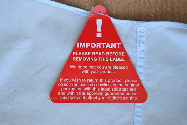 Немає верхньої паперової бирки, є нижня.