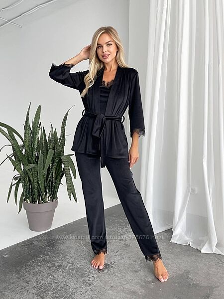 Подробное описание: р.42 до 52р. Комплект-трійка кофта, майка, штани трикотаж велюр