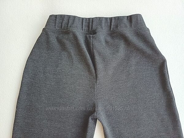 Пропоную сірі трикотажні штани, від Simply School. Матеріал - 97% поліестр, 3% еластан, щільний, еластичний. Вживані пару разів, акуратно, стан відмінний.Розмір вказано на 12-13 років. Довжина з бокового шва 103 см, з внутрішнього шва 76 см, ширина талії 31 см, тягнеться до 38 см, ширина стегон 44-52 см. Ширина штанини зверху 24-28 см, внизу 22 см. Посадка спереду 25 см, ззаду 32 см.