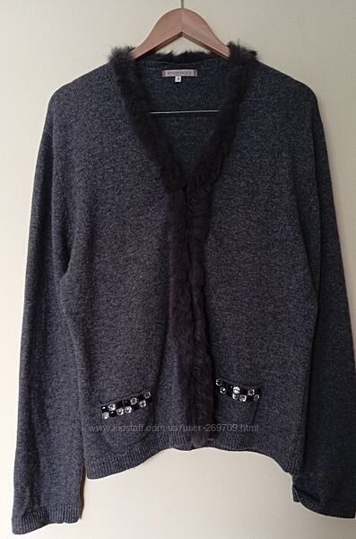 Приємний мягенький кардиган в складі вовна,кашемір, віскоза, стан ідеальний, без признаків носіння , розмір вказано 5, довжина 66 см, ПОГ 55 мм ПОБ 54см, рукав від горловини 80 м