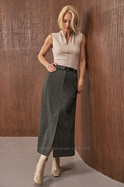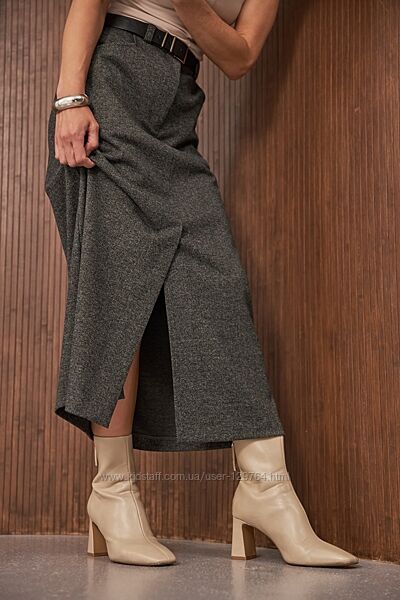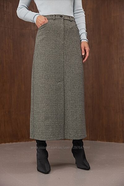 Тепла спідниця зі щільної, мякої вовняної тканини з додаванням віскози.