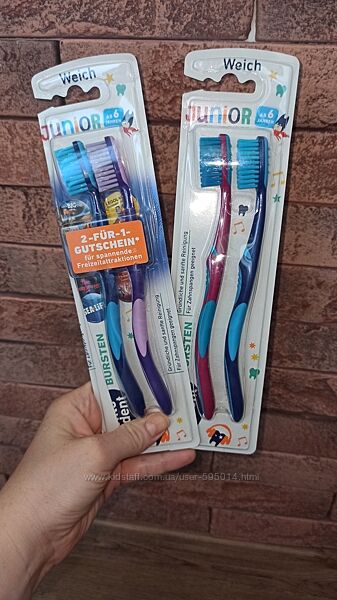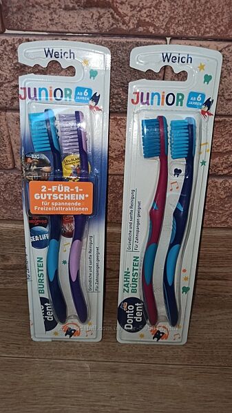 Щетки новые, запечатанные. Своему ребенку покупала только такие щетки - остались очень довольны. В остатке 2 упаковки.Производитель - Dontodent (Германия)