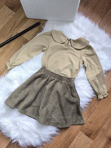 Стильна спідниця для дівчинки в оливковому кольорі. М’яка тканина в рубчик та еластичний пояс забезпечують комфорт та зручність. Ідеальна як для щоденного образу, так і для святкових заходів.Виробник: Туреччина.