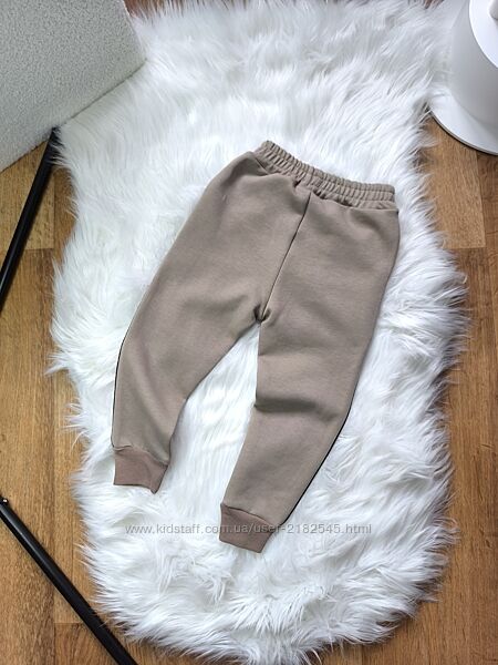 Стильні спортивні штани для хлопчика у бежевому відтінку з контрастними чорними смужками по боках. Еластичний пояс забезпечує комфорт, штани легкі та практичні – для будь-яких активних моментів протягом дня.Виробник: Туреччина.