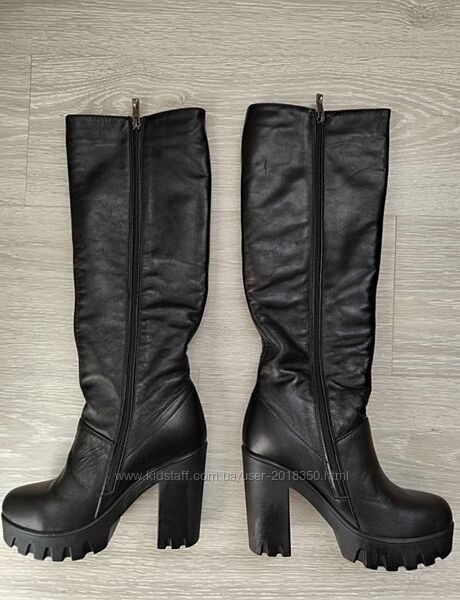 Чоботи сапоги зимові зима ботинки ботінки на каблуку каблуке 37 шкіра кожа