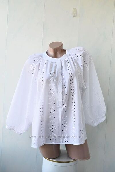 Дуже красива, стильна блуза в стилі бохо. етностиль, із широким, об´ємним рукавом від New Look. Прикрашена вишивкою ришельє, прошва. Набирці розмір 10, сяде і на більший, орієнтуйтеся за вимірами. Але якщо