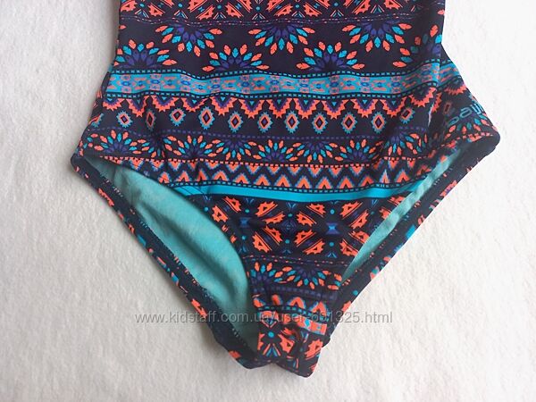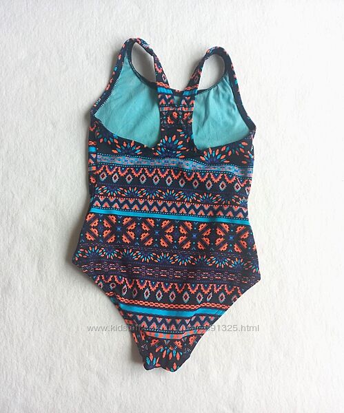 Пропоную цілісний купальник для плавання, від Decathlon. Колір чорний з геометрічним принтом у синьо-блакитно-персикових кольорах. Є підкладка. Вживаний акуратно, стан відмінний, без дефектів.Розмір на 8-9 років, довжина від плеча до промежини без розтягування 50 см, тягнеться до 56 см, ширина грудей під пахвами від 27 до 34 см.