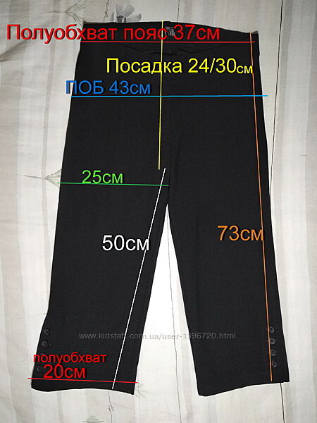 Класичні чорні бріджи - виміри на фото, тканина брючна хлопок+лайкра - добре тягнуться.Знизу штанини маленькі розрізи. В дуже доброму стані.