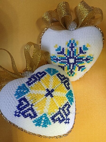 Іграшки вишиті ручної роботи сердечки і кулі, основа пінопластова, вишивка одностороння, інша сторона атласна, з підвіскою. Діаметр кулі 8см, висота сердечка 8см. Ціна вказана за одну іграшку. Перешлю поштою. Дивіться й інші мої вироби.Другие объявления продавца