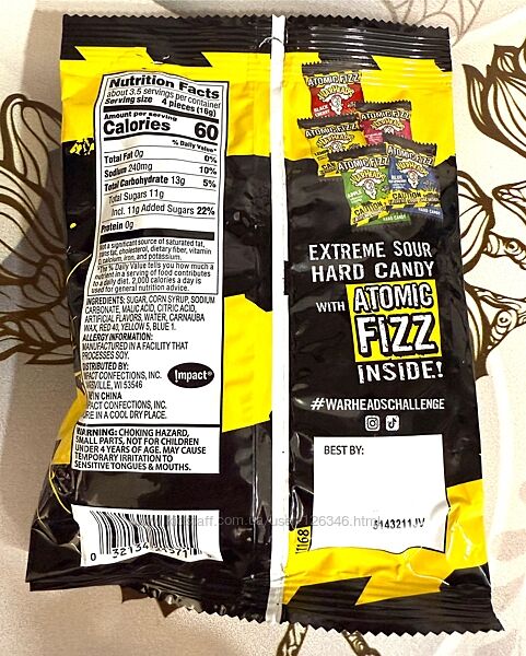 Подробное описание: Екстремально кислі льодяники Warheads Atomic Fizz Extreme Sour Hard Candy
