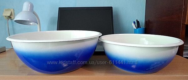 Подробное описание: Миски тонированные/эмаль/Полтава/1992г/2шт/2,5 и 4л/Новые.