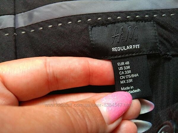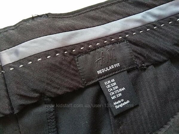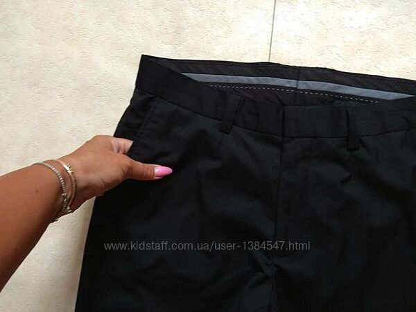 Мужские брендовые черные классические брюки штаны H&M, 33 размер. Сток ( не ношеные). Красиво ложатся по фигурe. Oтличного качества. Высокая посадка. Тянутся.. В поясе - 41-42 cм. В бедрах - 50-52 см. Длина - 106 см. Низ - 19 cм. Посадка 24 и 37 см.