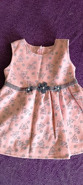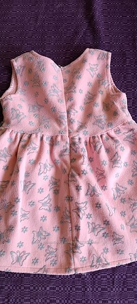Тепла, практична, святкова на підкладці сукня, ззаду на замочку, в ідеальному стані, одягалася декілька разів. Матеріал м´який, типу байки, тягнеться.На етикетці пише на 30 місяців, але орієнтуйтеся по замірах. Загальна довжина від плеча 43 см, ширина під руками 28 см. Гольфик новий, якість супер . В подарунок макасини 20 р.