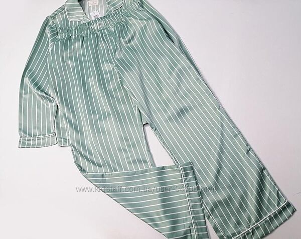 Пижамный комплект из атласа в зеленую полоску рубашка и брюки