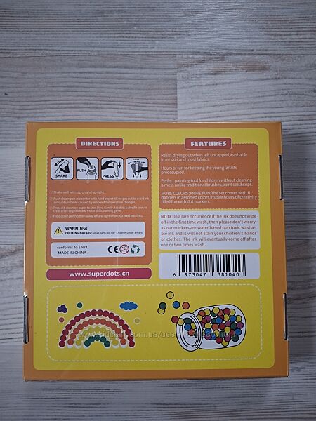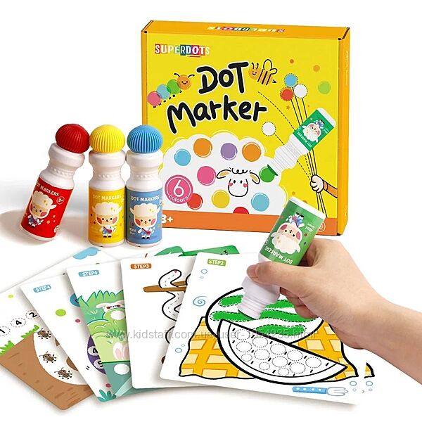 Продам интересный, качественный, яркий набор "Точечное рисование". Оказывается рисунок можно создать без единой линии, только одними точками. Этот творческий набор рисования точками станет отличным началом для привлечения ребенка к искусству рисования в стиле пуантилизм. Набор поможет сформировать умение анализировать и смешивать цвета, формировать образное мышление, развивать комбинаторные способности, стимулировать развитие сообразительности, воспитывать внимательность и аккуратность. Краска на водной основе, не имеет запаха, гипоалергенна и очень легко смывается с тела, твердых поверхностей и ткани. В самих маркерах нет мелких деталей и острых углов. В наборе 6 больших точечных емкостей с краской. Возрастная категория 3+. Цена: 600 грн.Набор новый, в коробке, запакованный.