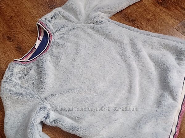 Светр імітація хутра, дуже теплий та стильний для дівчинки. Двійна підкладка з трикотажу.По низу манжети з люрексом. В ідеальному стані. Голубого кольору. Фірма Alive.Розмір 152.