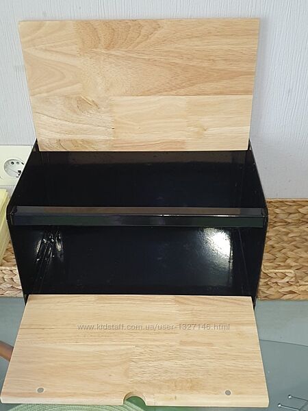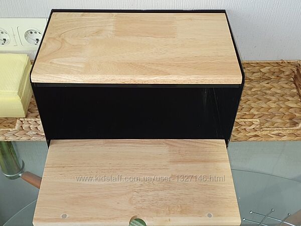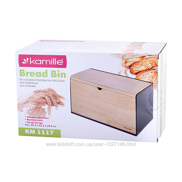Хлебница Kamille 35.5*21.5*19.5см.з нержавіючої сталі з відкидною кришкою на магніті з дерева