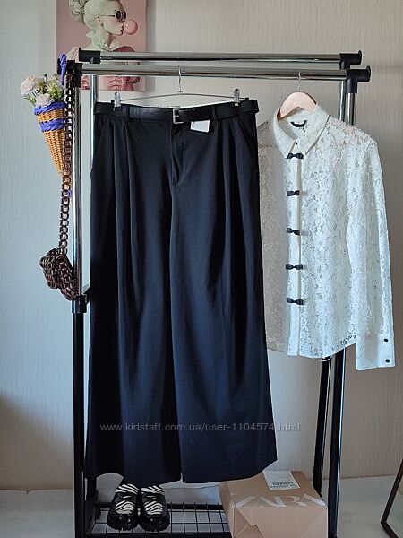 Подробное описание: Чорні штани палаццо zаra розмір хl, пояс у комплекті