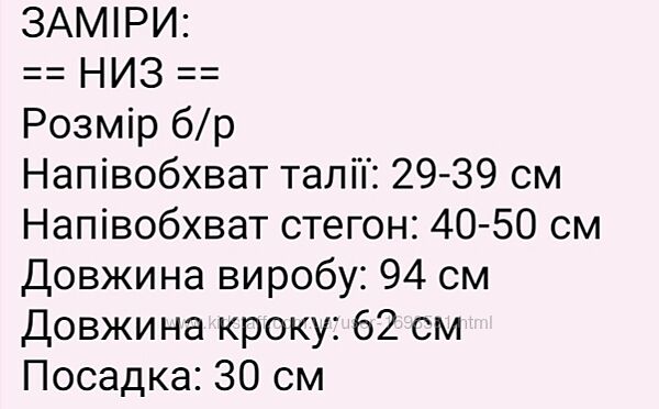 Заміри: напівобхват талії 29-39см