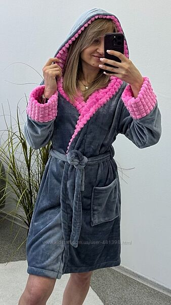Теплий махровий жіночий халат з капюшоном, дуже м´який та приємнийВсі халати цільнокрійні, пошиті без бокових швів ❤️