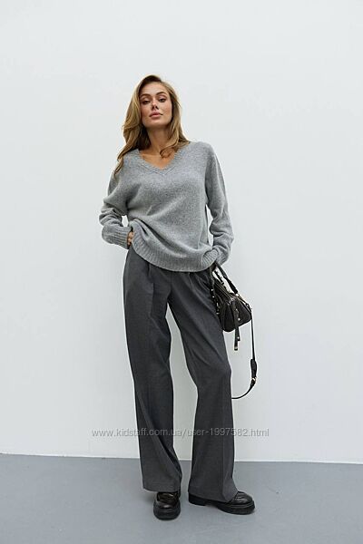 Подробное описание: Жіночий джемпер в´язаний з v вирізом з ангори з вовни светр теплий