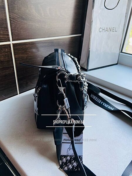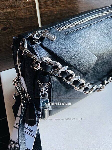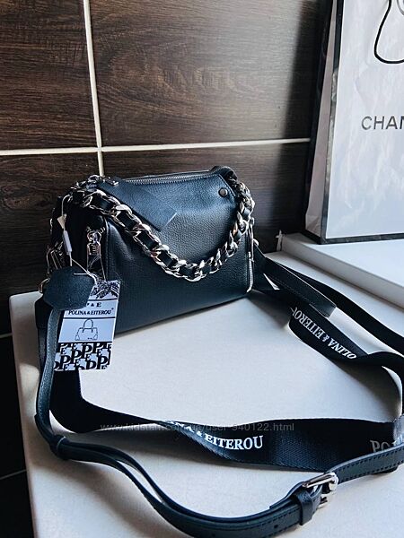 Чорна шкіряна сумка через плече Polina & Eiterou , полина энтероуВ комплекте два ремешка: