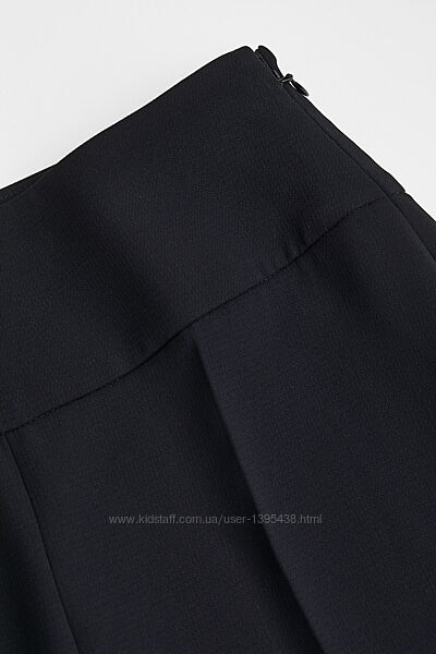 плетена тканини із потайною блискавкою з одного боку, з широкими прямими штанинами зі складками.