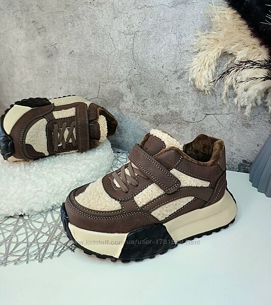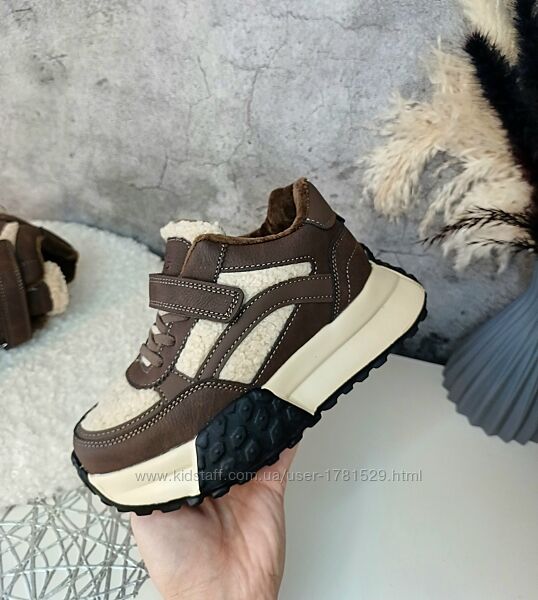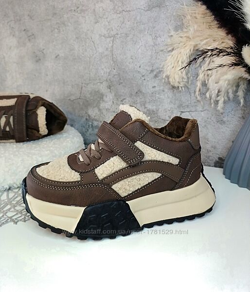 Верх якісна еко-шкіра, вставки тедді. Всередині на флісі. Дуже легенькі, на ніжці дуже круто виглядають. Устілка утеплена флісом анатомічна з супінатором з загином. Фіксація шнурками, зверху липучкою. Регулюються на будь-яку повноту ніжки. Заміри вказані від краю до краю устілки.