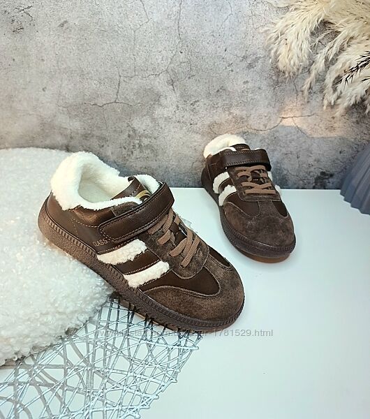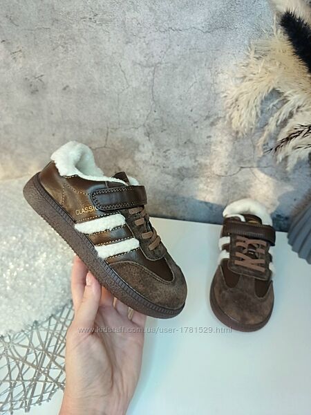 Верх якісна еко-шкіра і замш, вставки тедді. Всередині на флісі. Дуже легенькі, на ніжці дуже круто виглядають. Устілка утеплена флісом анатомічна з супінатором з загином. Фіксація шнурками, зверху липучкою. Регулюються на будь-яку повноту ніжки. Заміри вказані від краю до краю устілки.