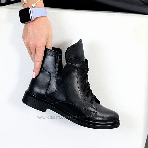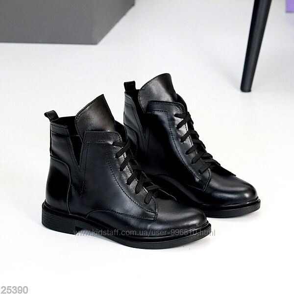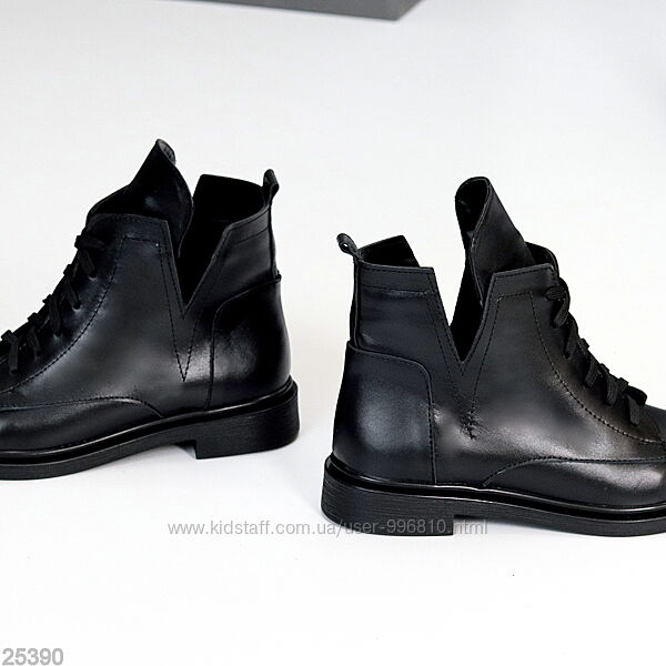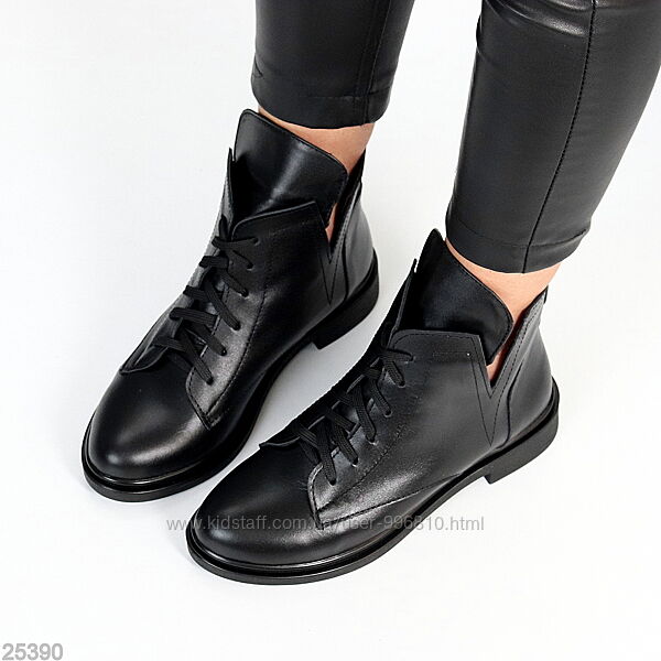 Подробное описание: Чорні дизайнерські демі черевики натуральна шкіра низький хід