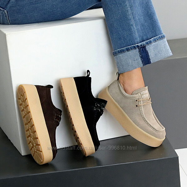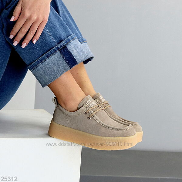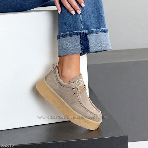 Подробное описание: Круті туфлі натуральна замша колір Greige на платформі
