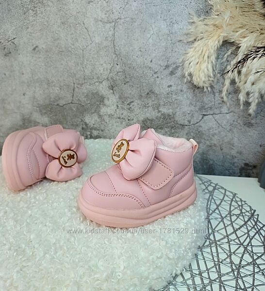 Демісезонні черевики для найменших принцес.Верх якісна еко-шкіра. Всередині на флісі. Дуже легенькі, гнучкі і м´які. Устілка утеплена з супінатором. Фіксація липучкою. Заміри вказані від краю до краю устілки.