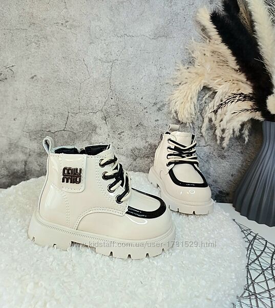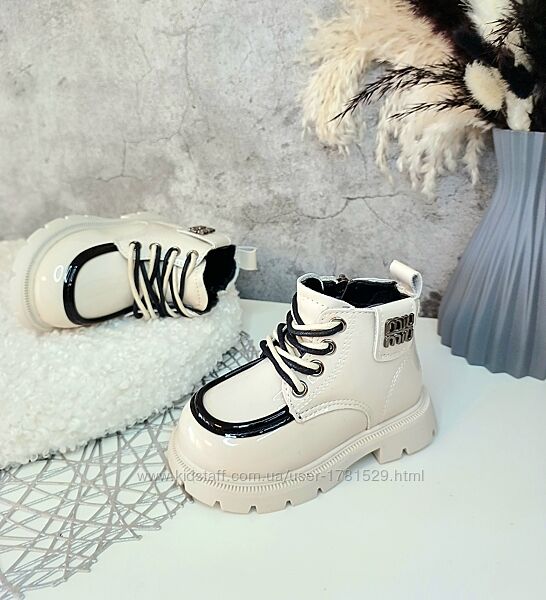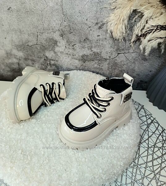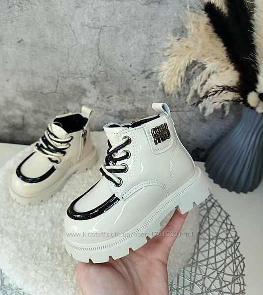 Демісезонні стильні черевики для дівчинкиВерх якісний еко-лак, всередині на флісі. Дуже легенькі і гнучкі. Устілка також утеплена флісом. Фіксація шнурками, збоку на замочку. Заміри вказані від краю до краю устілки. Моделька маломірить, дивіться заміри устілки.