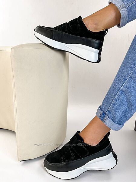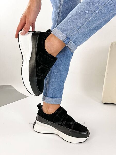 Подробное описание: Натуральні кросівки Замша та шкіра на невеличкій платформі на липучках
