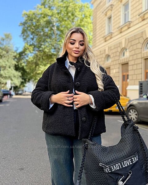 Подробное описание: Жіноче коротке пальто на гудзиках з тканини букле