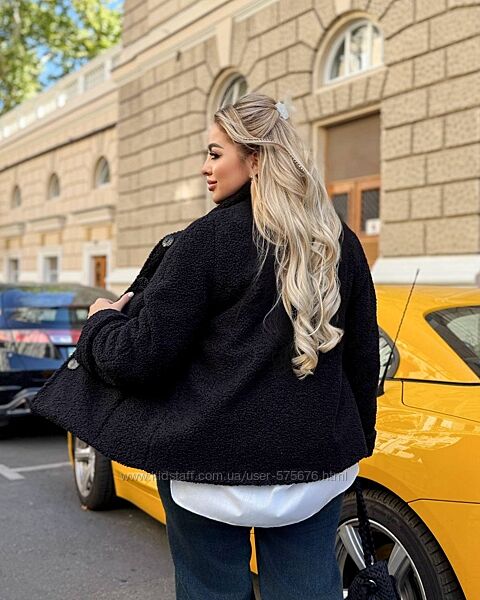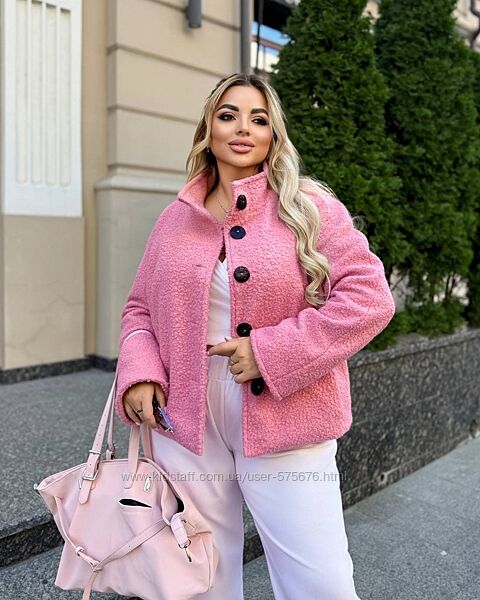 р.44 до 62р. Жіноче коротке пальто на гудзиках з тканини букле