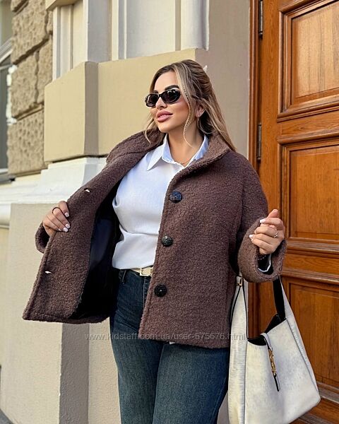 Стильне пальто-тренд цього сезонуЖіноче коротке пальто на гудзиках з тканини букле - це
