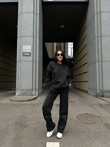 р.42 до 52р. Крутий теплий костюм з штанами палаццо тринитка на флісі