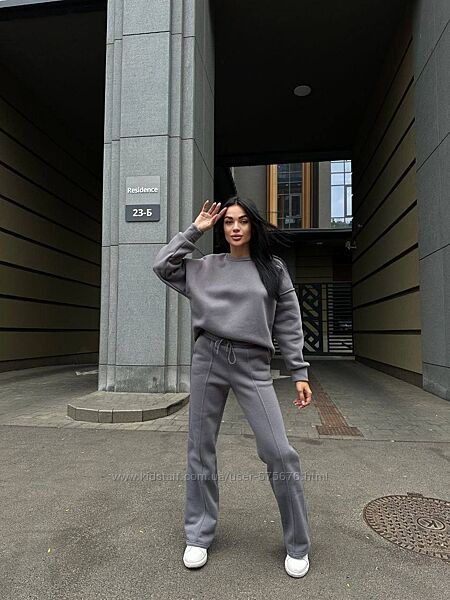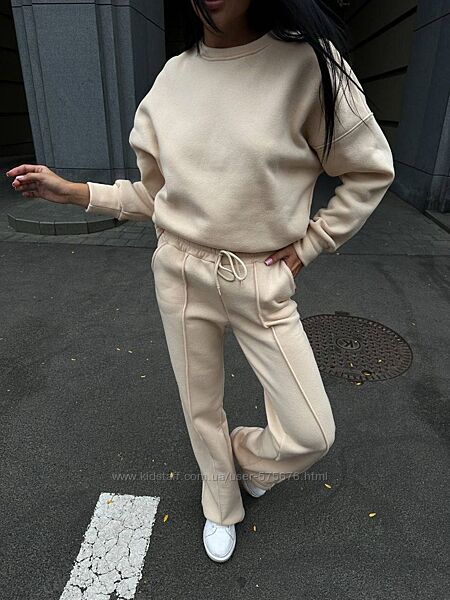 Подробное описание: р.42 до 52р. Крутий теплий костюм з штанами палаццо тринитка на флісі