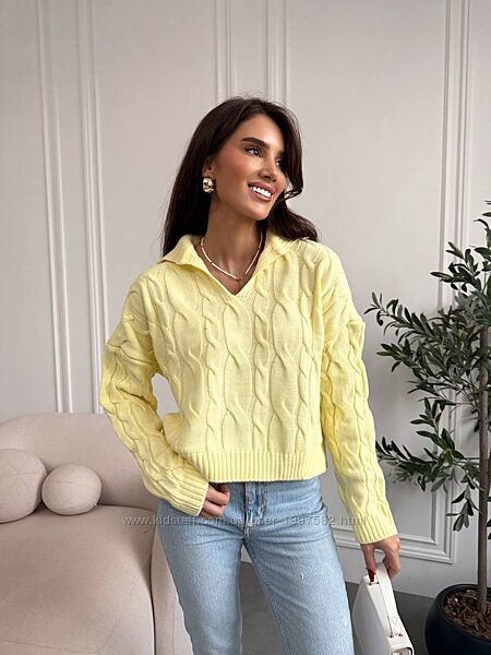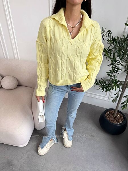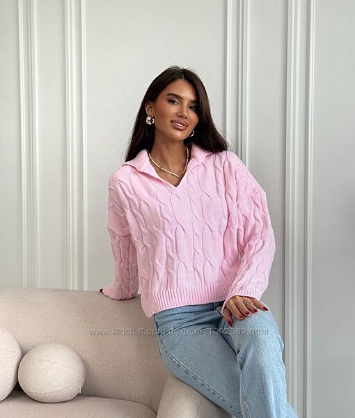 Інші светри нашого магазину Ви можете переглянути за посиланням: https://www.kidstaff.com.ua/user-anno-1997582/sect...Светр із коміром поло. Обʼємна в’язка “косичка”