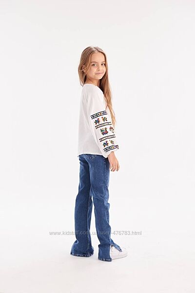 Стильна дитяча вишиванка для дівчинки.Склад тканини: 55% бавовна, 45% льон.