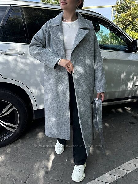Пальто прямого крою, з кишенями у бокових, з поясом
