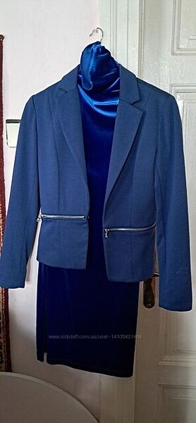 Велюрова сукня + піджак (S)Продам велюрову (оксамитову) сукню глибокого синього кольору, шиту на замовлення.