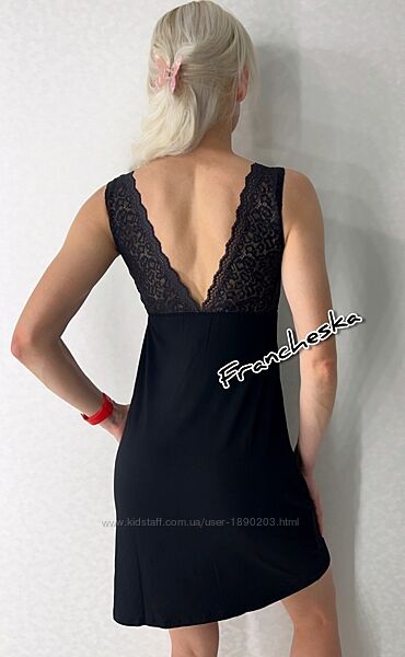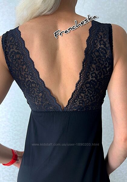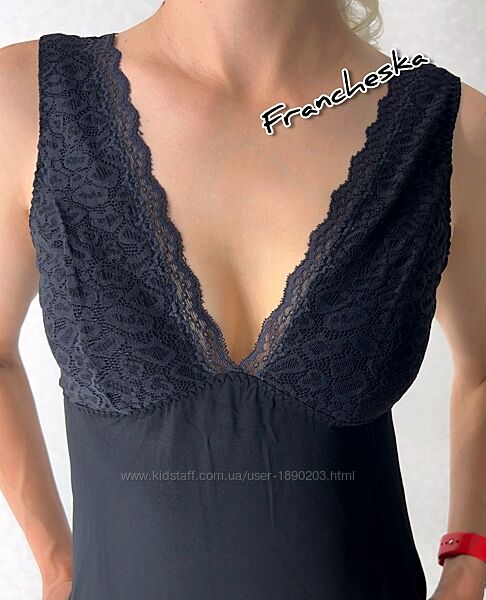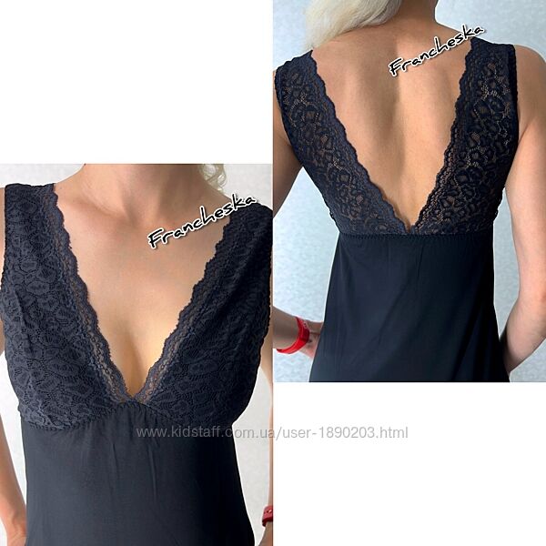 Подробное описание: Чорна нічна сорочка Roksana віскозна з мереживом арт.1726