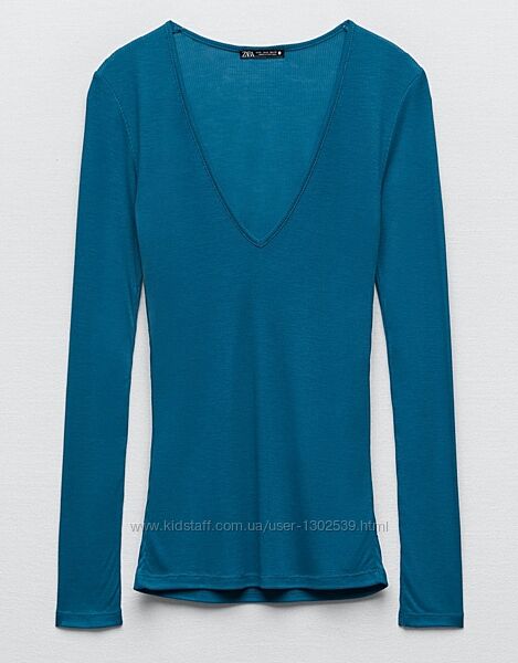Легенька жіноча блуза топ Zara із ребристого напівпрозорого трикотажу з V-подібним вирізом.Стан: нова з біркою.