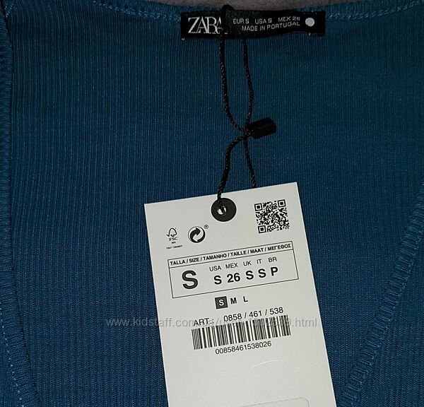 Подробное описание: Блуза топ XS-S Zara Італія жіноча базова синя зелена трикотажна в рубчик