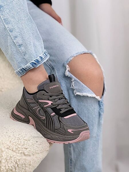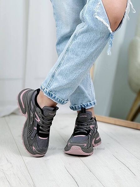 Код 10802 Кросівки Матеріал еко шкіра + текстиль Колір GREY/PINK На шнурівці Висота від п´яти 6 см Висота підошви позаду 5 см , попереду 2,5 см