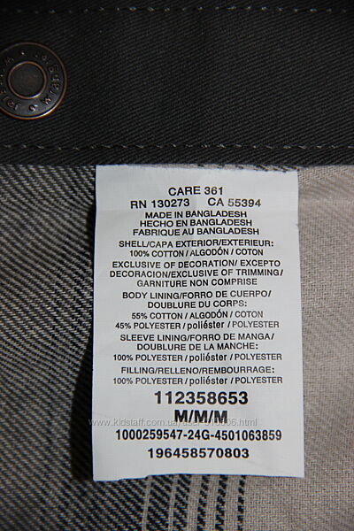 Материал верха 100% cotton, подкладка 55% cotton, 45% polyester.